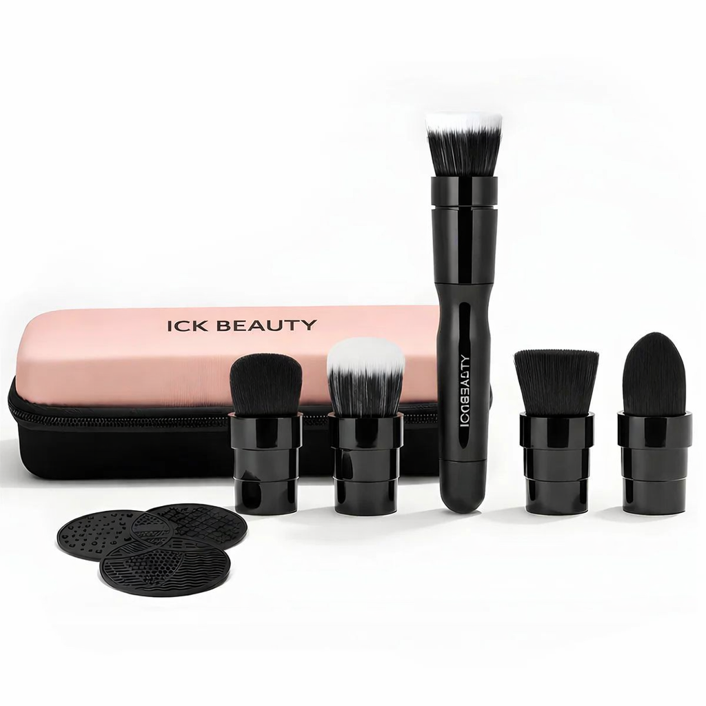 This complete kit includes our motorized handle, a CR123A battery, and five pro-grade interchangeable brush heads for foundation, blush, powder, defining, and pro-level blending. Designed to deliver even, effortless coverage while using less product, the Beauty Maven Set gives you everything you need to create any look with precision—perfect for everyday ease or full-glam artistry.